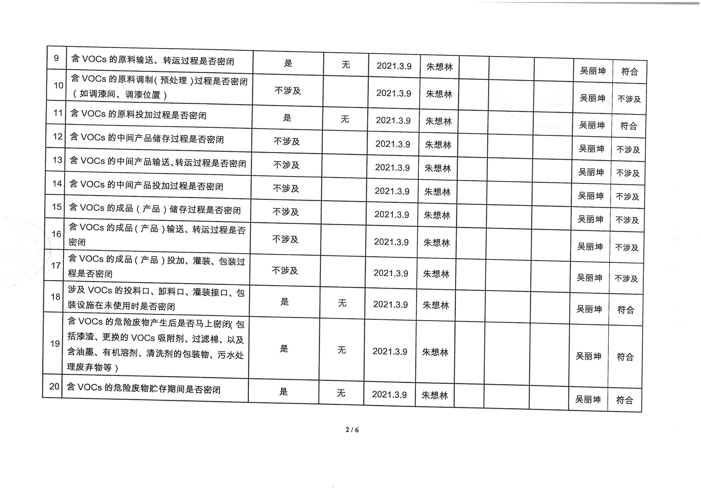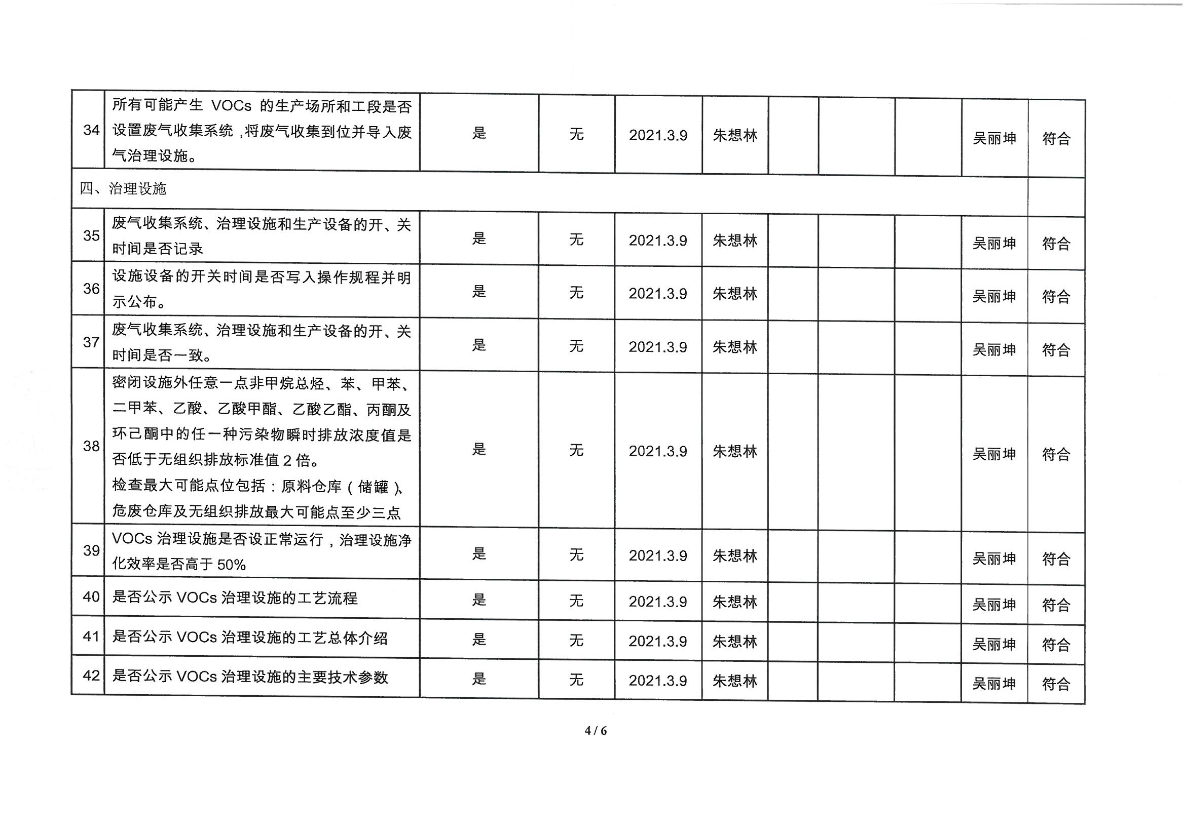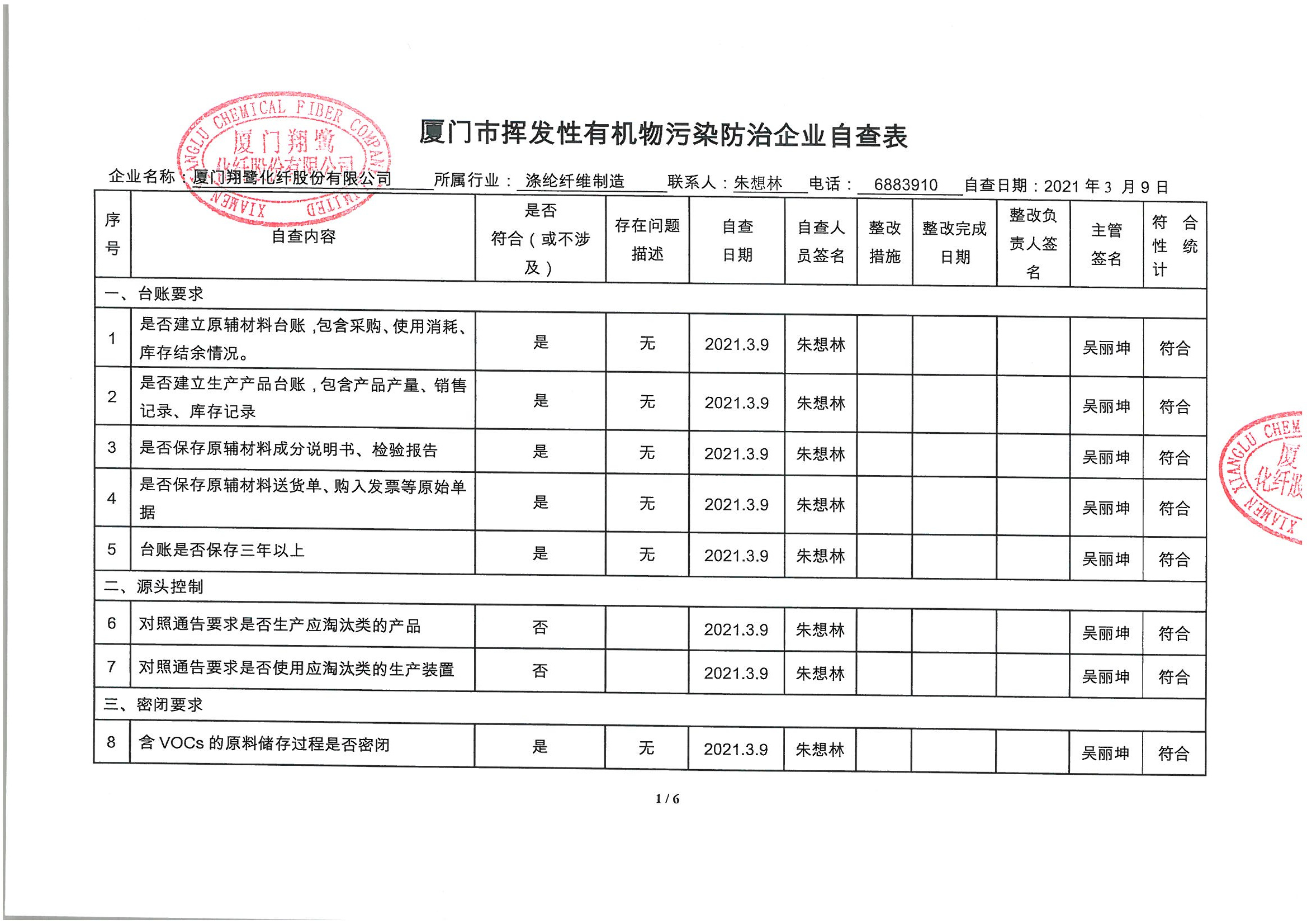 廈門市揮發(fā)性有機(jī)物污染防治企業(yè)自查表 (2021年 第一季度)